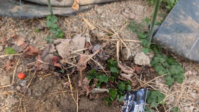 やはり温かい時期に定植しないのが悪くて枯れたかな?と思い、切ってみたらちゃんと緑で枯れてなかった!