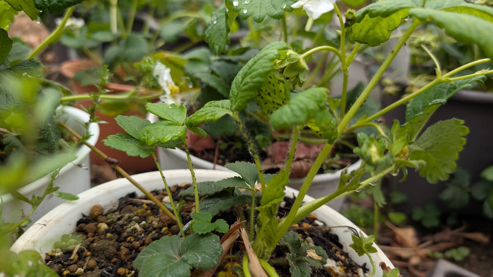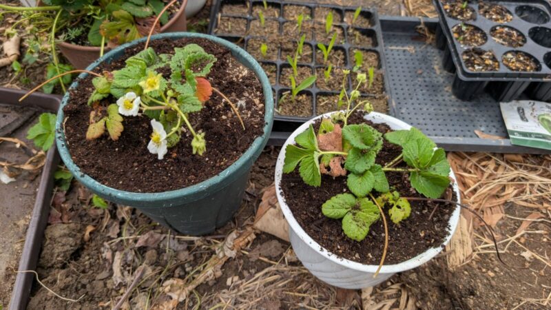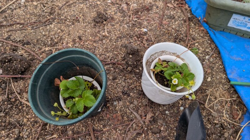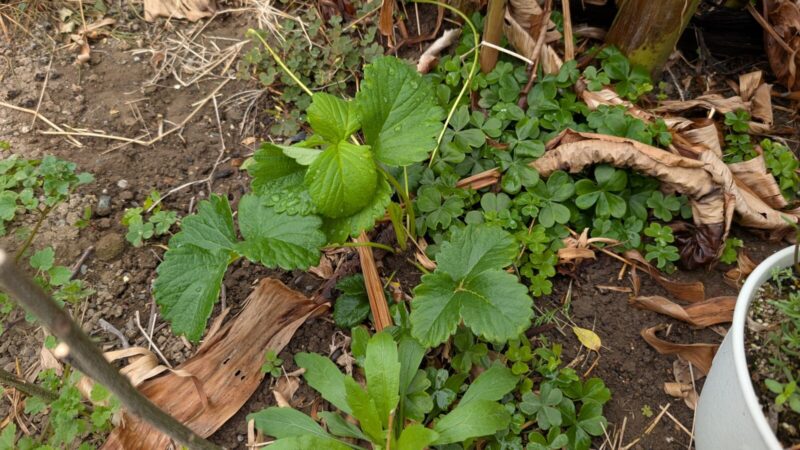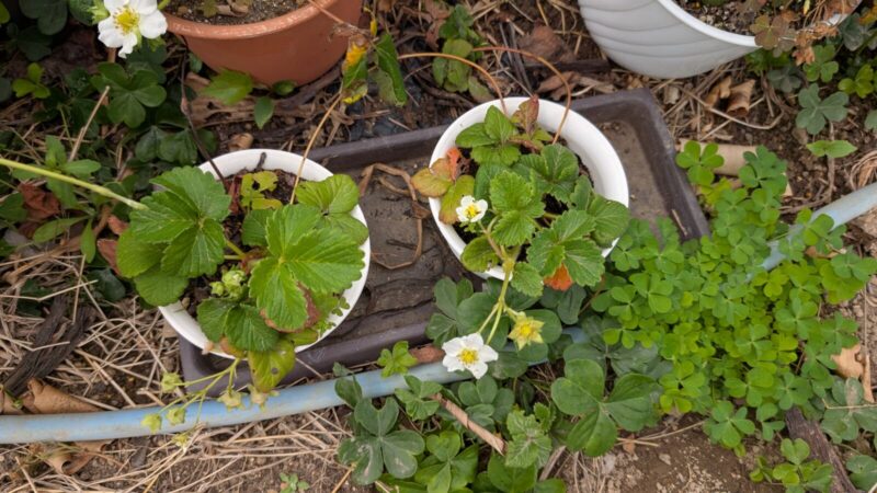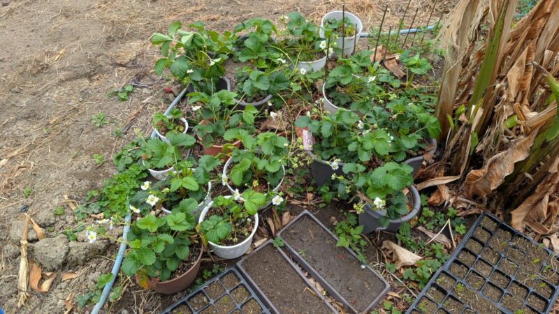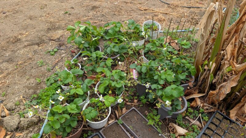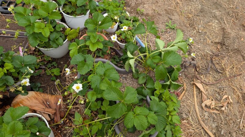 イチゴの白蜜香も最初は3株だったのに今やかなり増えた。。