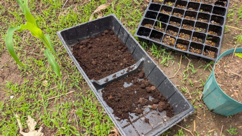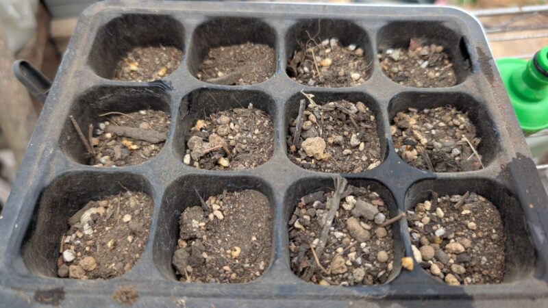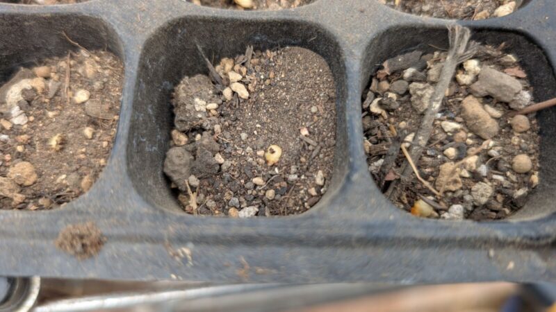 先日撒いた黄色ブートジョロキアのタネを移動時にぶちまけてしまった・・・