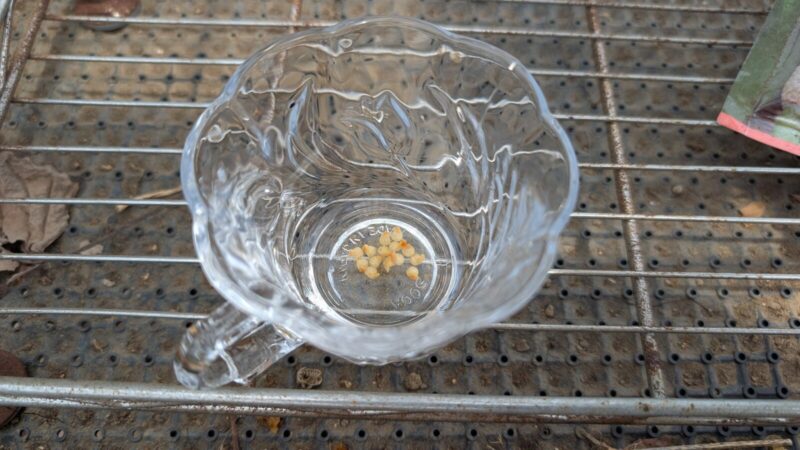 黄色はぶち撒けたけど赤い方はとりあえず土に蒔きました。