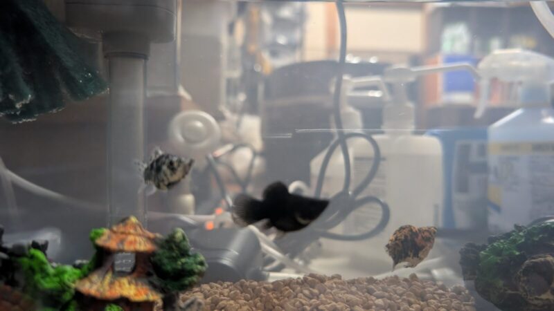 YouTube動画:水槽のバルーンモリーとヤマトシュリンプのミックス[2025-08]