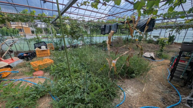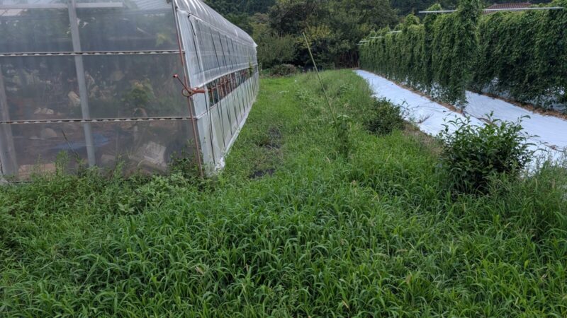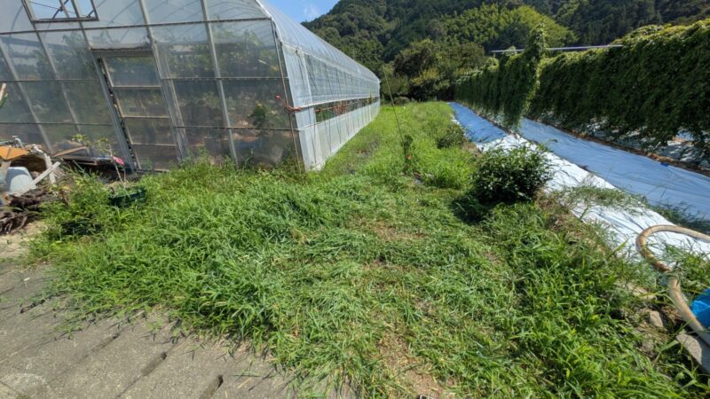 余った除草剤は畑の作物を植えてない所に散布し、少し草刈り機で草を刈る。