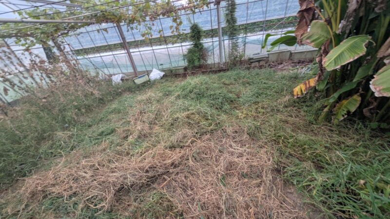 やはりハウスの中とは言え、作物育てるときには防草対策必要かな。。