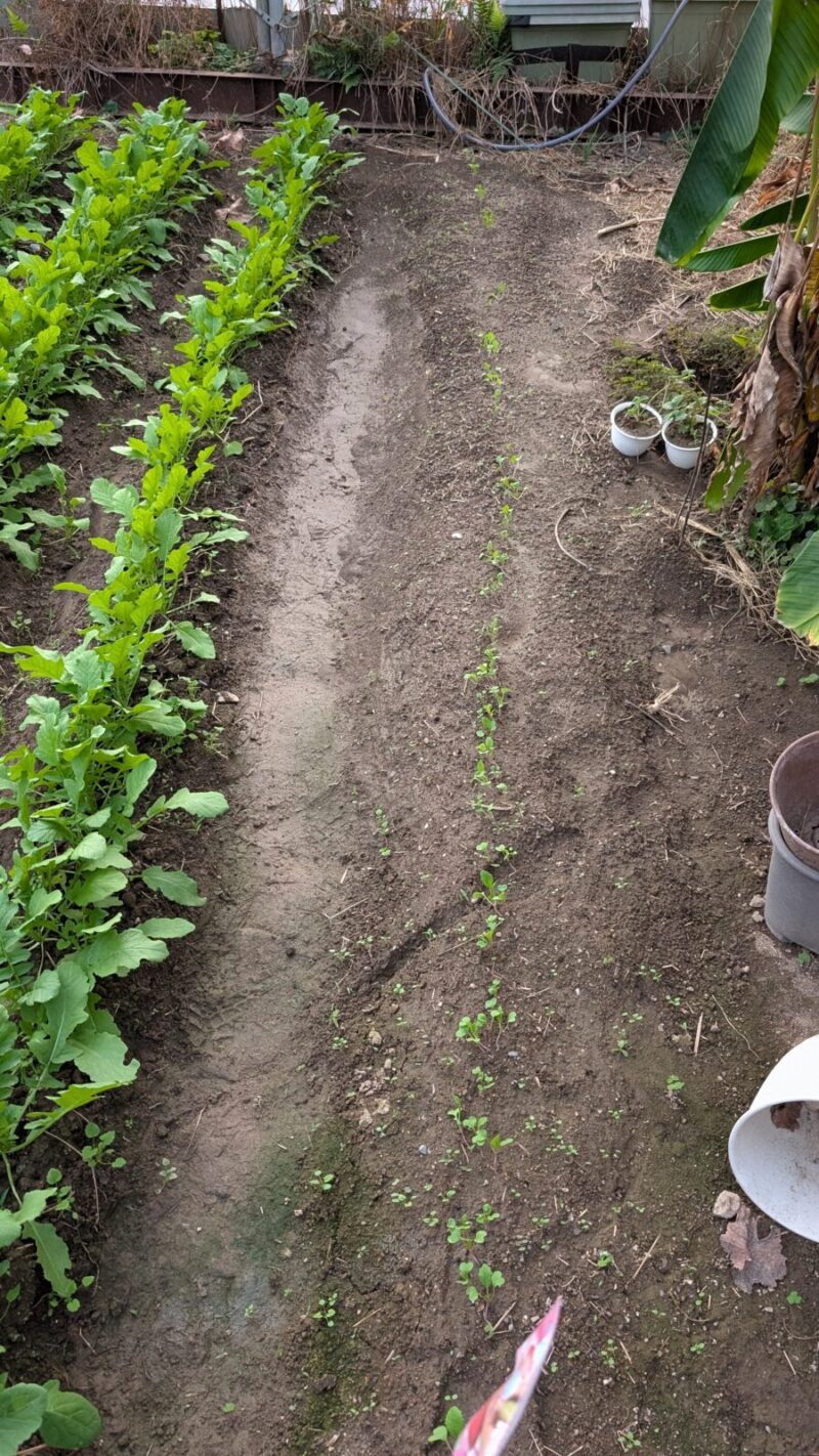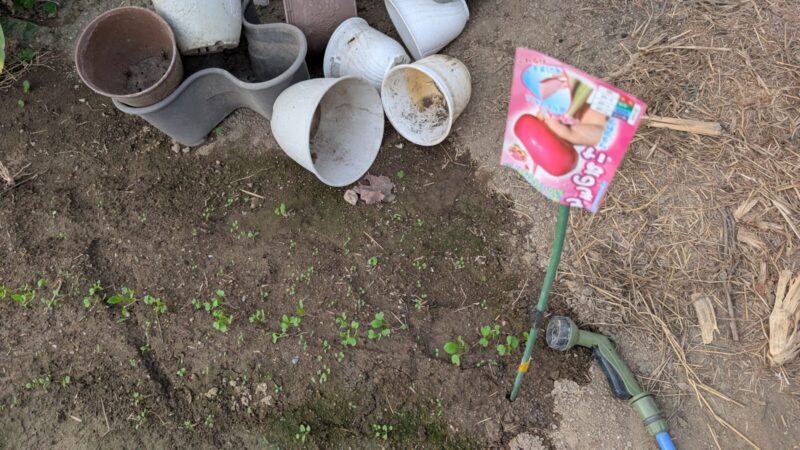 ニンジンがまだ発芽してないけど、水をちょっとやりすぎた・・・