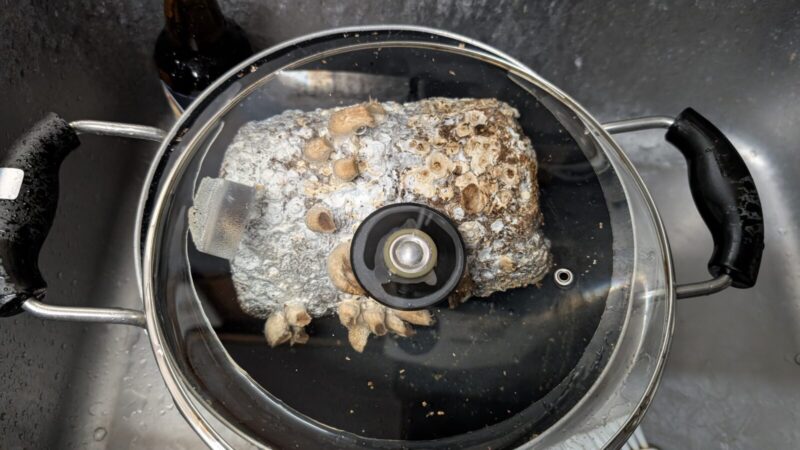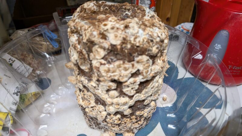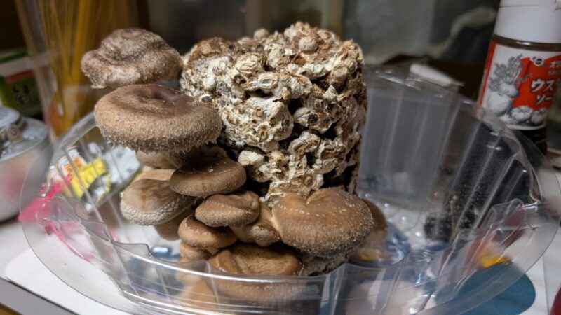 思ったよりできない4個目のシイタケ菌床。