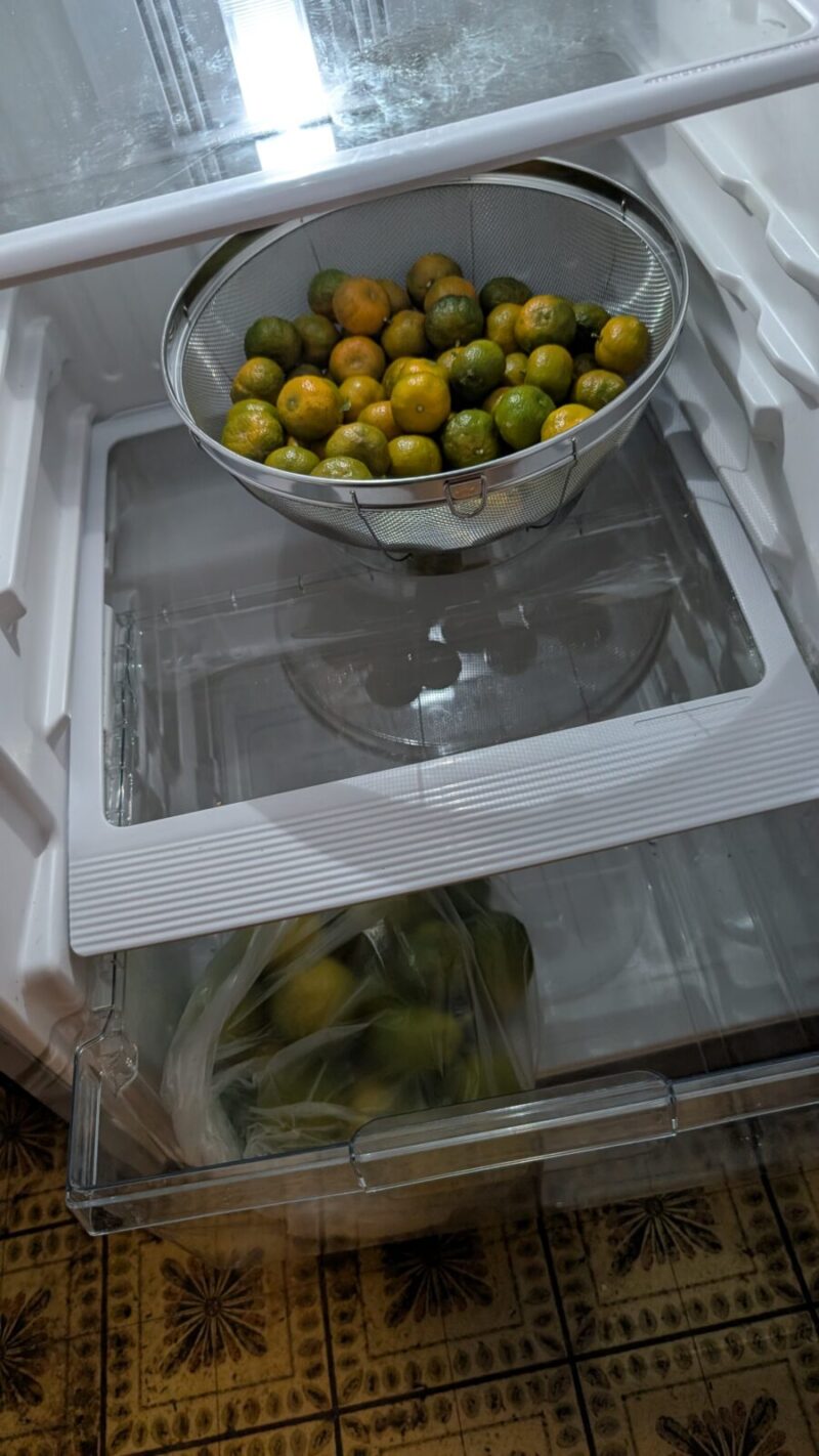 レモンは冷蔵庫で4週間、シークァーサーは1週間位は保存できるらしい。