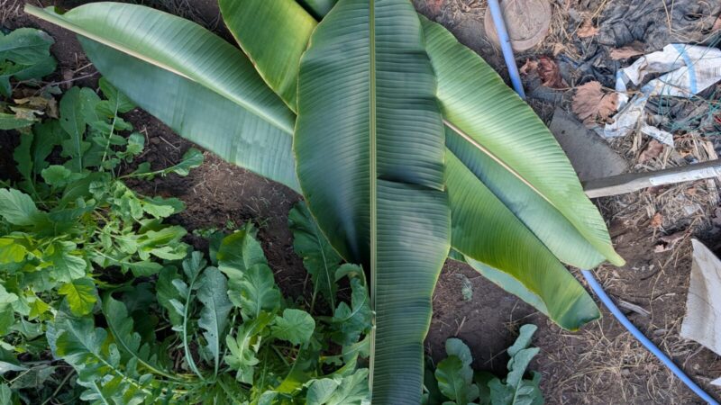 バナナの葉を切る