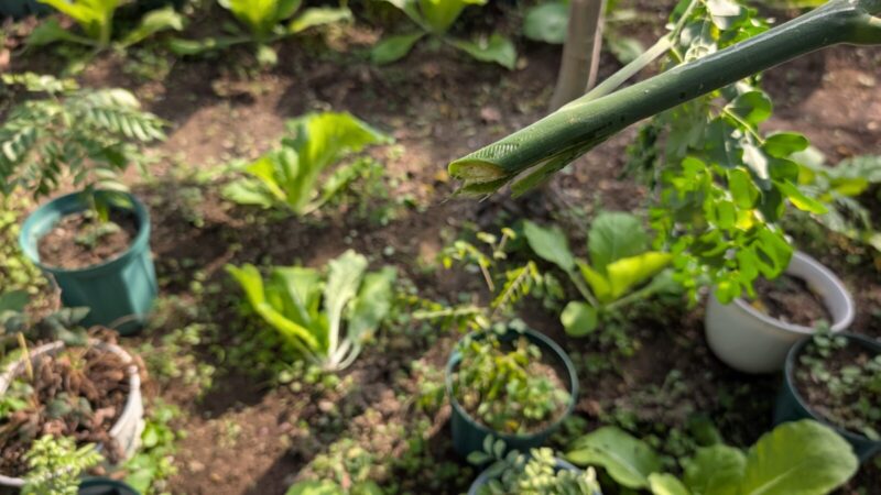 外のモリンガはビニールハウス内と比べてやはり元気もないし小さいな。