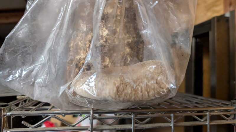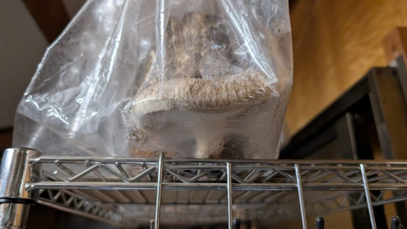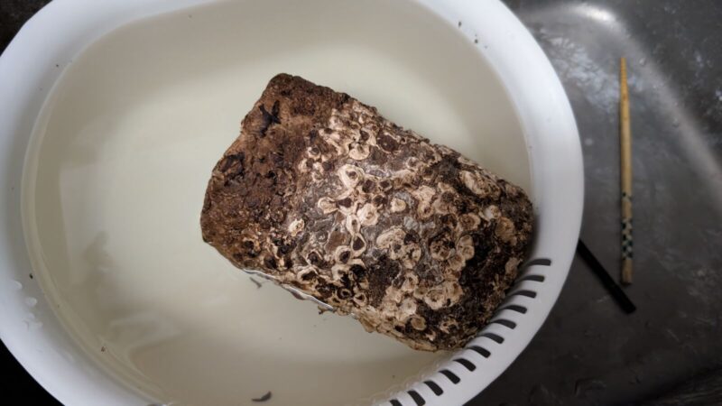 4つ目のシイタケ菌床、水から上げて2周目スタート